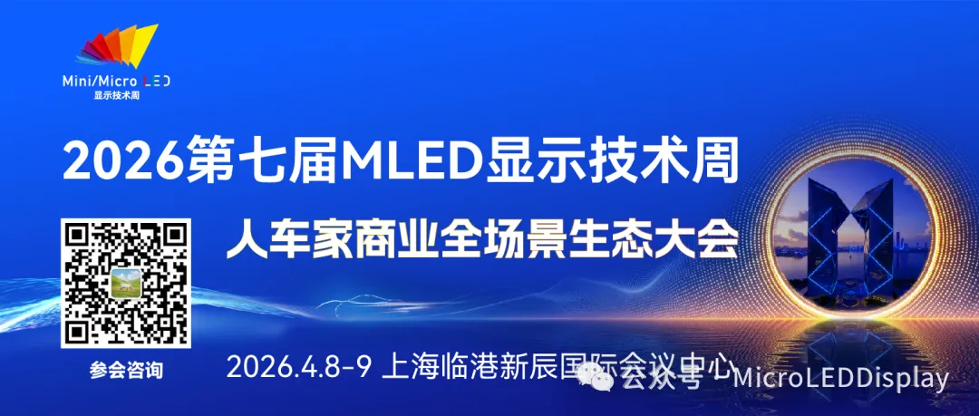此外,为更全面呈现MLED产业创新成果与协同生态,大会期间举办「 2026MLED全生态春季集中发布」活动,旨在打造一个集产品展示、技术交流、商业对接于一体的高价值平台。2026MLED全生态春季集中发布活动与大会主论坛、闭门研讨会、企业考察等活动形成深度联动,旨在促进MLED产业交流与协同发展。