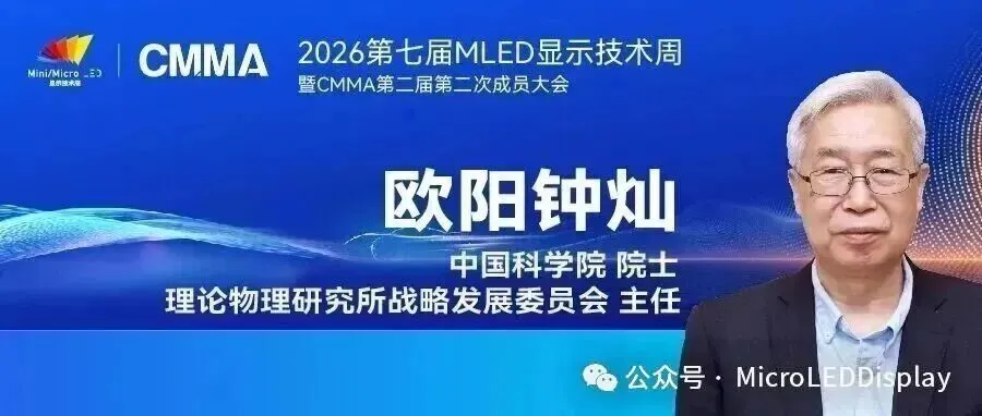 中国科学院院士欧阳钟灿将出席2026第七届MLED显示技术周,数十年显示洞察,把脉产业方向!