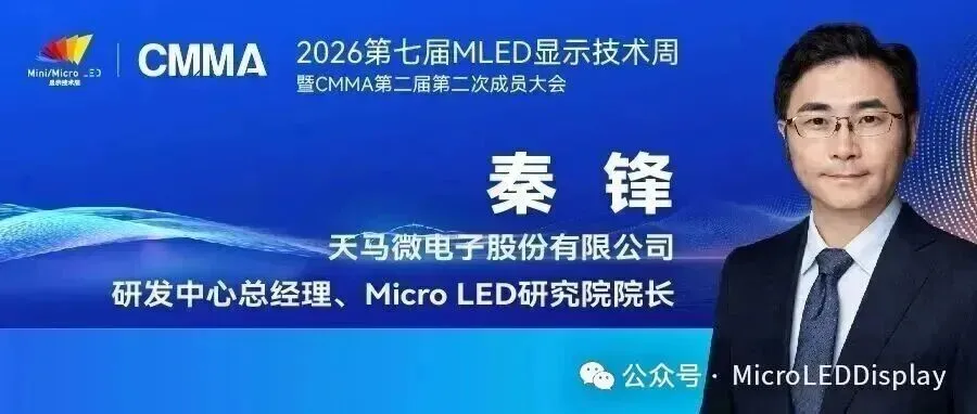 天马微电子研发中心总经理、Micro LED研究院院长秦锋将出席2026第七届MLED显示技术周