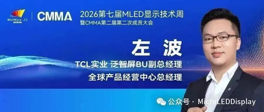 TCL实业泛智屏BU副总经理、全球产品经营中心总经理左波将出席2026第七届MLED显示技术周