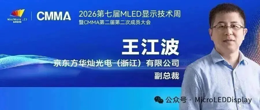 京东方华灿光电副总裁王江波将出席2026第七届MLED显示技术周