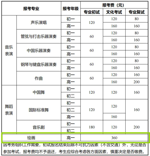(四)学校各专业方向(含乐器)可兼报,年级不可兼报。
