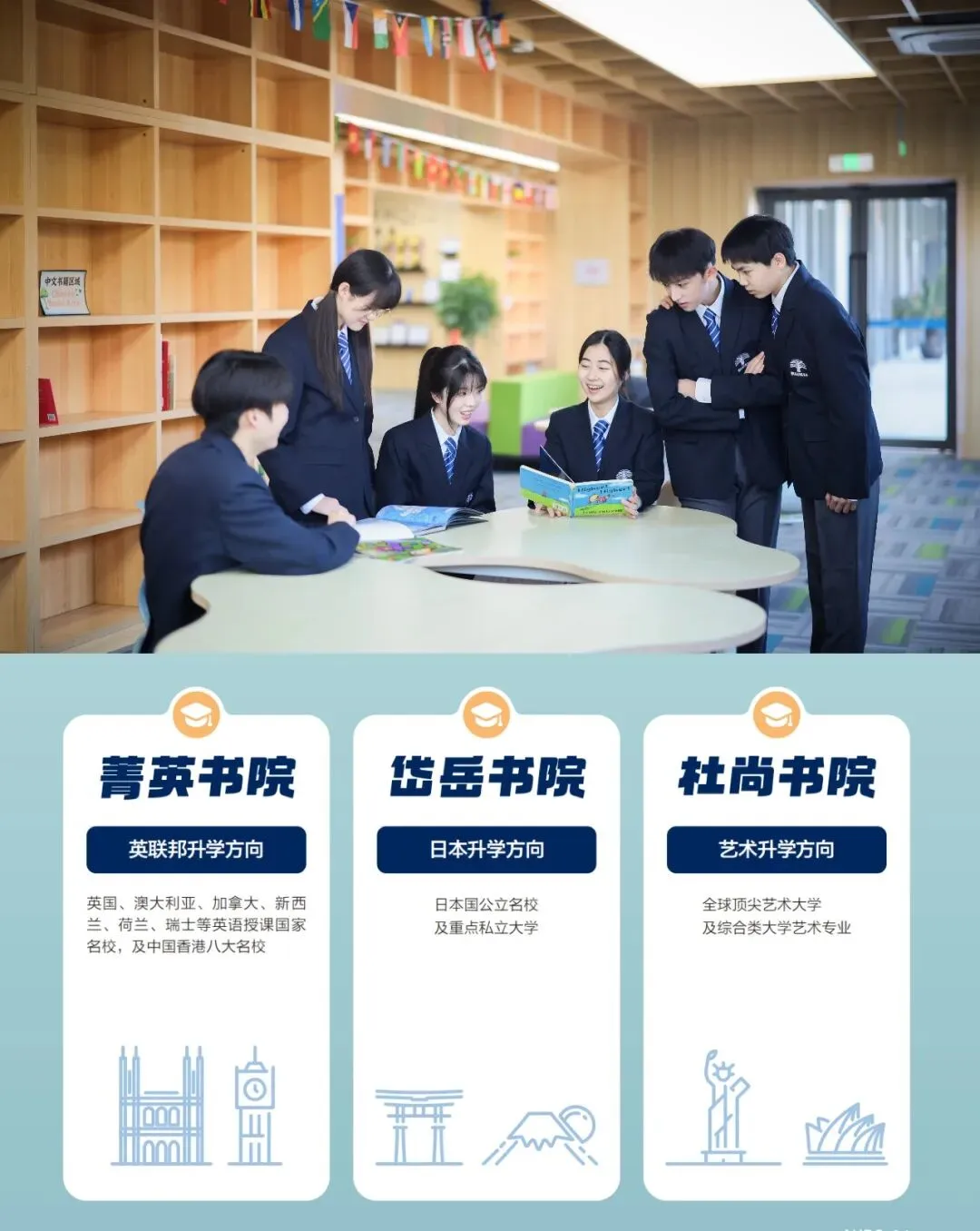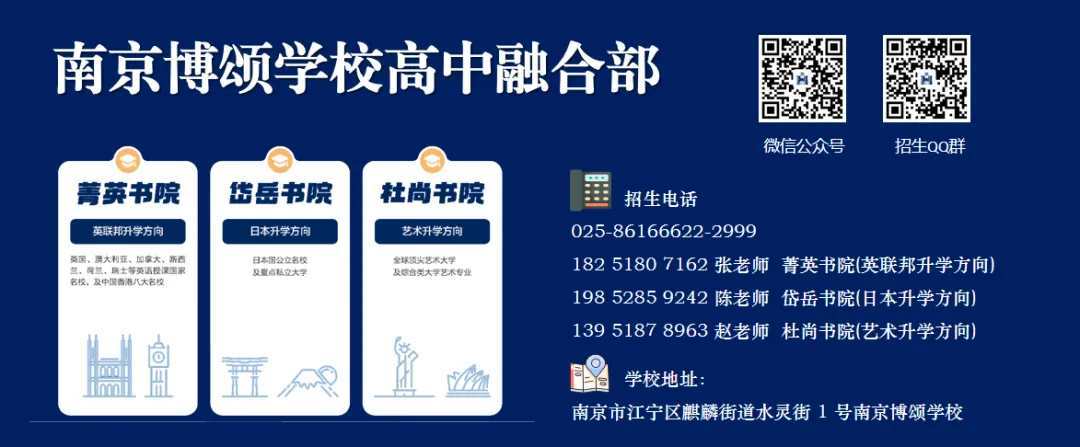 依托雨中国高成熟的书院制体系,南京博颂学校高中融合部设立菁英书院、岱岳书院、杜尚书院,对应英联邦升学、日本升学、艺术升学三大核心路径,精准匹配不同学子的兴趣特长与升学需求,真正实现因材施教,让每位学生都能找准自身赛道、发挥核心优势。