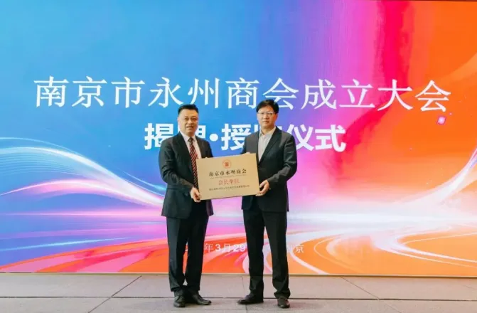2026年3月29日,南京市永州商会成立大会在南京隆重举行。南京市工商联、岳阳市工商联相关领导,在宁永州籍乡贤及企业家代表,以及异地湘籍商会代表齐聚一堂,共同见证商会正式成立。南京市常德商会会长覃建建、副会长兼专职副秘书长张兰应邀出席大会,为兄弟商会送上祝贺与祝福。
