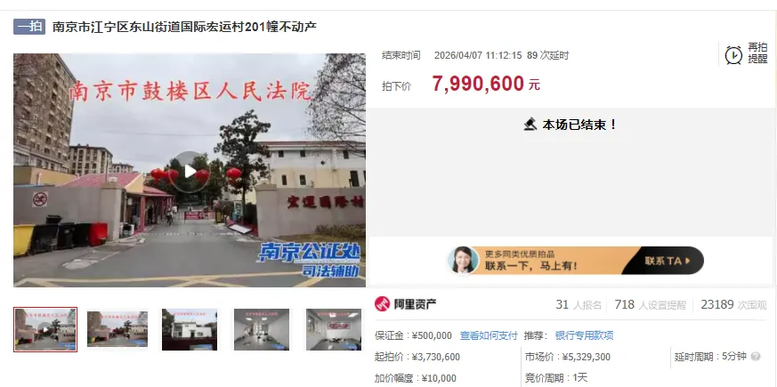 就在刚刚,南京南站附近的老牌别墅小区宏运国际村,在法拍网站上被31位买家争抢:一栋建面约224㎡的2层独栋别墅,起拍总价约373万,最终经过130次出价,以799万成交,比市场评估价还要高出266万。另外,锐评君还发现,南京近期一批低密别墅相继卖出高价,甚至接连刷新南京次新房成交纪录。南京别墅市场,太火爆。值得注意的是,这套房源是一栋2层高的独栋别墅,1楼带大院子,2楼有露天观景平台。