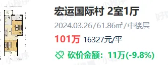 比如,一套建面约60㎡左右的中楼层房源,2021年还需要200多万,2024年只要一百多万就能拿下,折合单价仅1.6万/㎡。