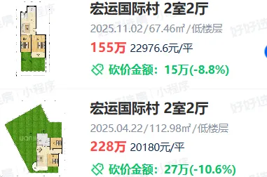 带院子的1楼房源成交价格相对高些,去年两套分别卖到了2万/㎡、2.3万/㎡。