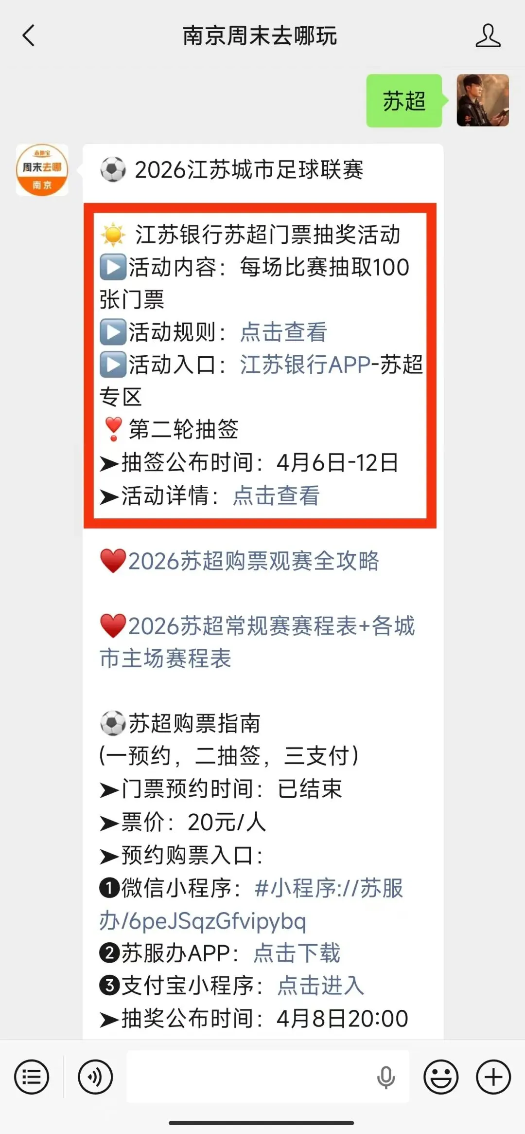 如果想要获取更多苏超相关信息,可以扫描下方二维码,关注【南京周末去哪玩】公众号,私信回复【苏超】即可获取