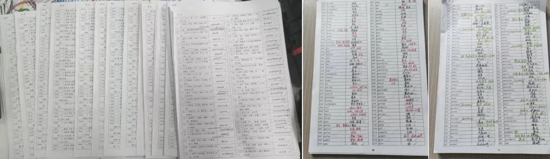 1.单词背诵阶段。从暑假6-9月,我是去网上买了5500词的中翻英和英翻中空白文档打印出来,大概各60页,每天90-100个单词,背完了默写,默写完了改,改完了把错误的再默写。先英翻中一轮,再中翻英一轮。我是英语底子比较好的那类,如果英语底子稍微差一点的,可以拉长战线和单词背诵轮数,比如说4月现在就开始,单词轮数也增加到英翻中两轮,中翻英两轮。
