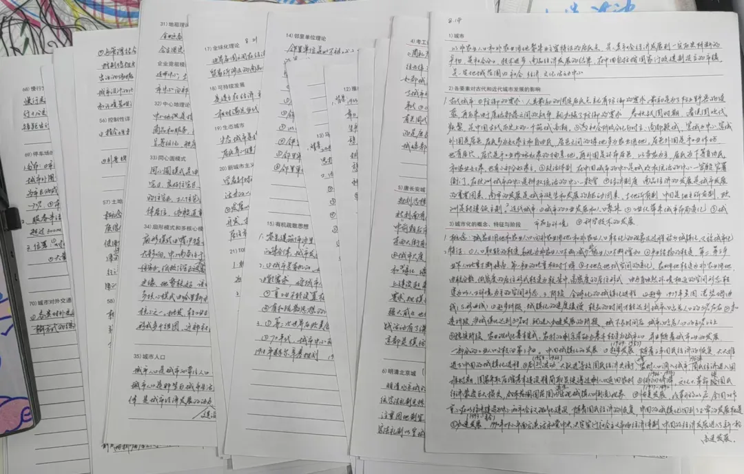 1.基础部分。我春季的时候把城市规划原理这本书看了一遍,脑子里面有这本书的框架,知道每一章大致讲的什么内容。夏秋季就开始背书了,内容是自己对着大纲及资料自己整理,资料文字来源于书本和机构。之后基本上是每天3—5条大纲内容,背完之后就默写。我背书比较简单粗暴,我是学懂了之后完全背诵基本一字不落,靠时间往上堆,有时候一背就是三四个小时。大家根据自己背书情况来,有的人习惯背框架自己填内容,不用完全学我。这里必须说,背书特别容易忘。所以之后我一直在背大纲,不停的写不停的背,我背了无数轮,说到题目就能条件反射地想到内容,复试的城建史最后的大题也是初试考纲上的内容,因为记得熟所以我也是很容易地写出来了。
