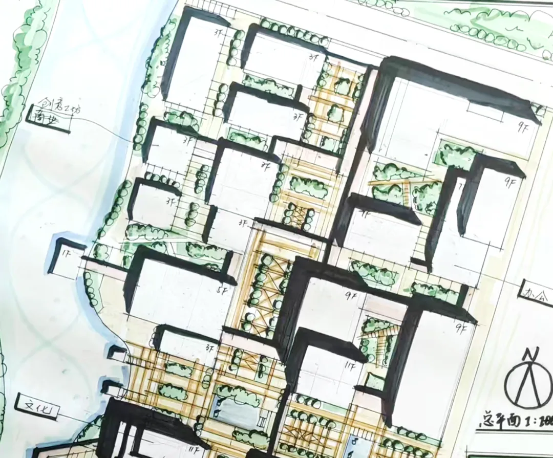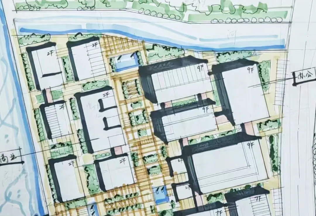 2.夏季班。七月份的时候参加了机构半个月的集训,这种长时间有思路有条理的训练会使快题水平突飞猛进。小任老师带领我们从各个主题内容进行训练,比如小区、火车站前广场、旅游综合服务区、工业园区、产业园、滨水地段、控规画法,每种主题都有自己的规范,小任老师会引导我们去修改。之后8月,我把集训的图全部都重新复盘了一遍,将老师改完的图再次临摹体悟。