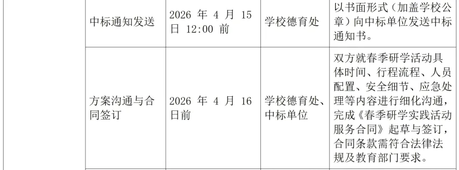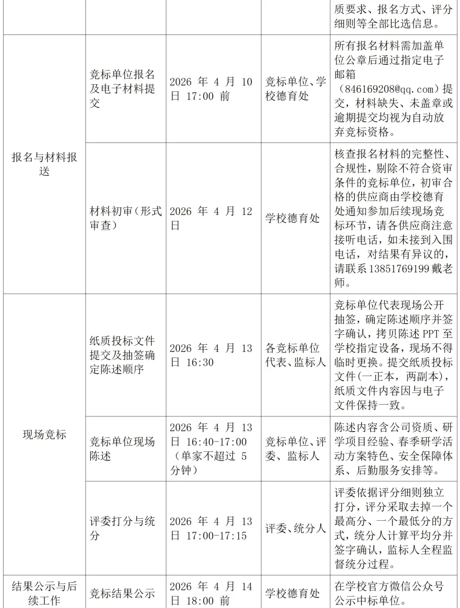 4. 其他后勤服务(8 分):提供研学手册等基础物料,且有专人负责学生行程对接、班主任沟通的得 6-8 分;仅提供部分基础物料,沟通机制不完善的得 3-5 分;无基础物料、无专属沟通人员的得 0-3 分。