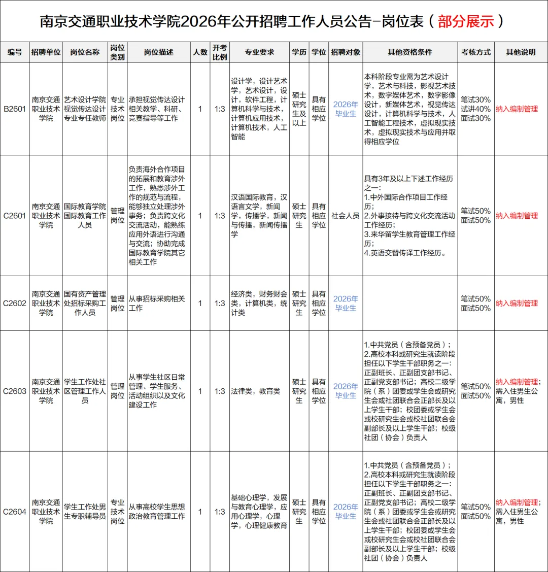 3. 如出现总成绩同分的情况,B岗位以面试、试讲成绩进行排序,C岗位以面试成绩优先,若仍同分,则采用面试加试方式。