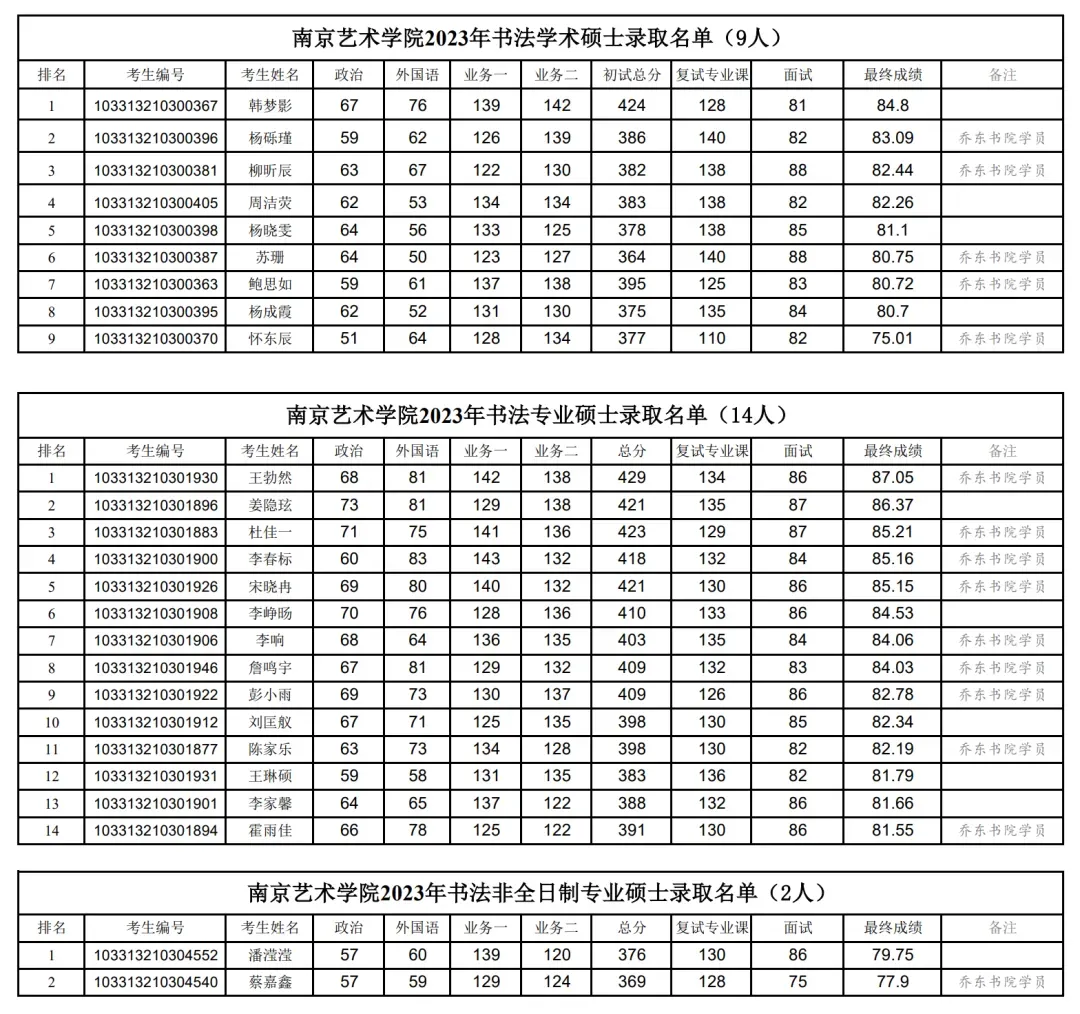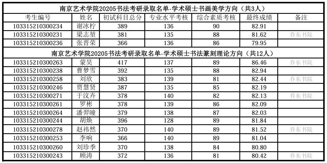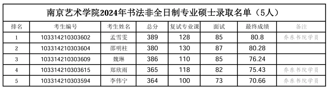 · 南京艺术学院2026年书法专业考研拟录取名单