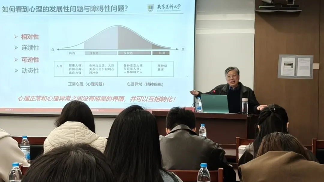 郑教授结合最新的大学生心理健康调查数据及多年临床门诊经验,深入分析了当前大学生的心理健康现状。他指出:18-24岁青年群体面临抑郁、焦虑、手机依赖等挑战;高校学生教育管理工作中常见休学复学标准模糊、家校医协同不畅、心理普查结果掩饰性强等现实困境;大量学生心理危机未被及时识别。这些问题都凸显了辅导员、班主任在日常工作中细致观察和主动关怀的重要性。