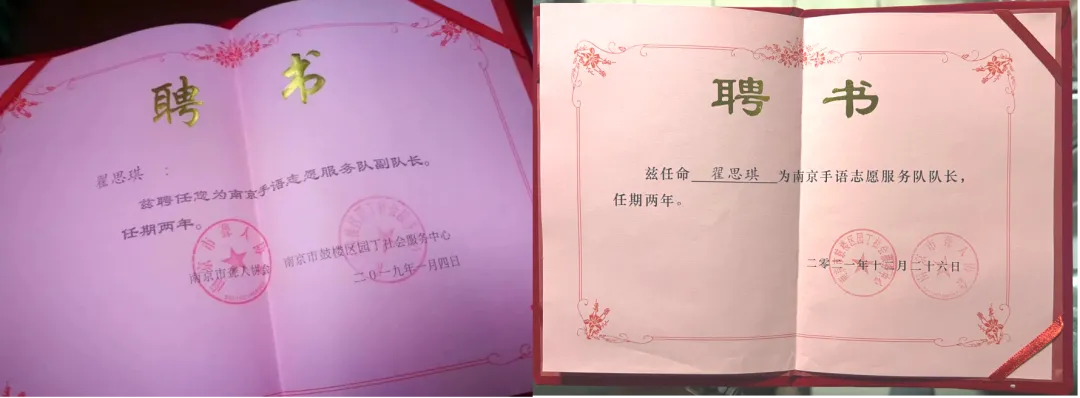 2021年,我和吴玥(左1)分别被任命为手语队队长、副队长。再比如吕捷老师、翠花阿姨、李丽、胡婕、张烨......说到这里,我的脑子里猛然蹦出很多名字和面孔。虽然有些人已渐渐走散,但那份因手语而聚的纯粹,永远留在记忆里。