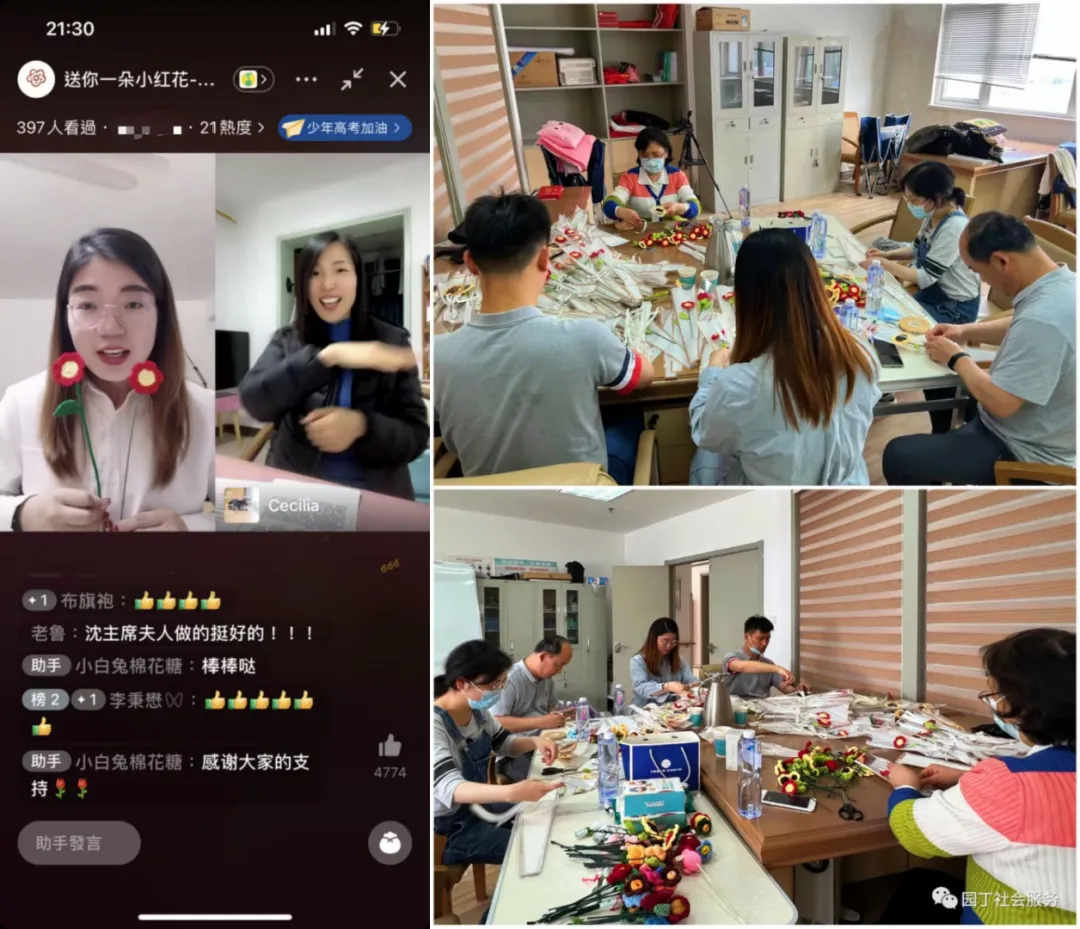 2023年12月27日,由南京聋协、南京手语志愿服务队及无声的瞬间摄影艺术俱乐部联合举办的“新年新气象”迎元旦茶话会。2023年3月,第24个全国爱耳日,市聋人协会邀请上海建纬(南京)律师事务所李毓松律师,针对聋人朋友普遍存在的民间借贷开展专题普法讲座。活动前期我配合聋协做了一些策划工作,李毓松律师也是我的先生,虽未进手语队,但胜似手语队队员,支持了我的很多工作,谢谢他~丁老师还组织过“送你一朵小红花”活动。印象中好像是我在朋友圈分享了一组小红花钩织的图片,丁子老师看到后萌生了策划想法,然后我通过直播的方式,带领手语队员和聋人朋友一起钩织,最终把大家亲手钩织的小红花寄到抗疫前线。