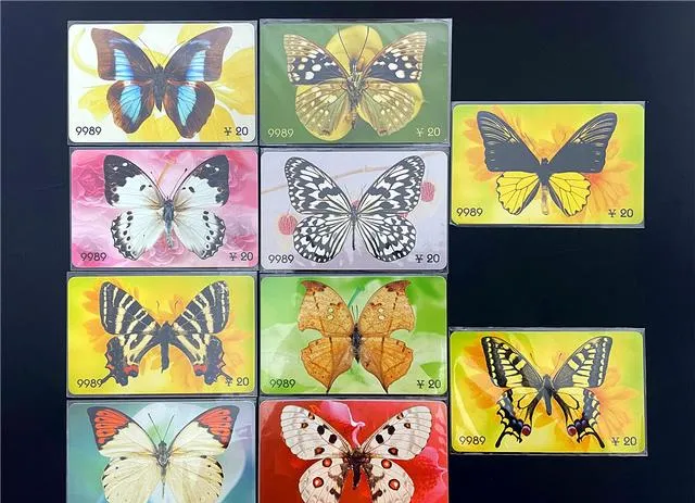 南京云锦卡,锦缎纹路细腻,镶着凤凰龙纹,背后那种贵气是搁在别处模仿不来的,摸一把,光滑得能照人,小时候只配看,真上手的不多,现在倒方便,随手一翻卡册子就能摸三张。同册子里还有蝴蝶卡,一张比一张艳,蓝的、黄的、花翅膀的,全往媚里头使劲,好几张图案我都没法叫全名,下次得带上懂虫子的亲戚再认。
