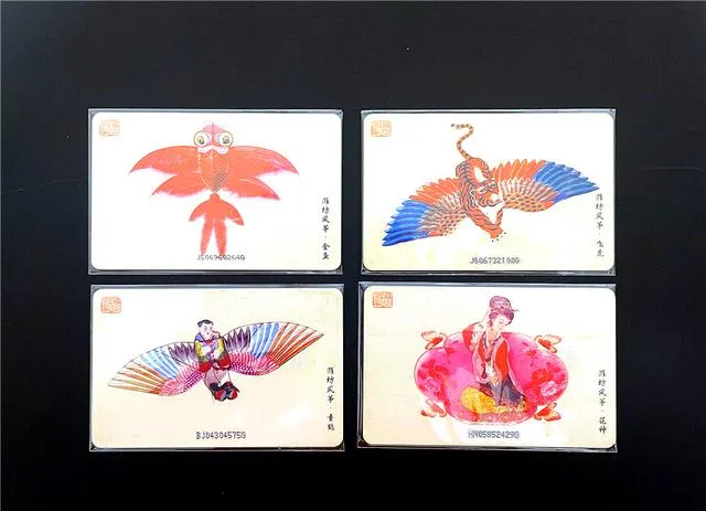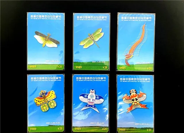 这组亮蓝底的电话卡叫白马公园首届风筝节纪念,画面干脆,一个个纸鸢迎风飞起,有蜻蜓、天牛、九节龙,翅膀一甩像要冲出卡面,卡片下面标着2001年,俯身算了算,已经二十几年没见谁说在白马公园放风筝了,小时候缠着大人买过,同款的风筝飞起来次次栽地,天上飘的总是别家的,我妈常说:“别人家的风筝就是耐飞。”她那语气,现在还时不时霸道地冒出来。
