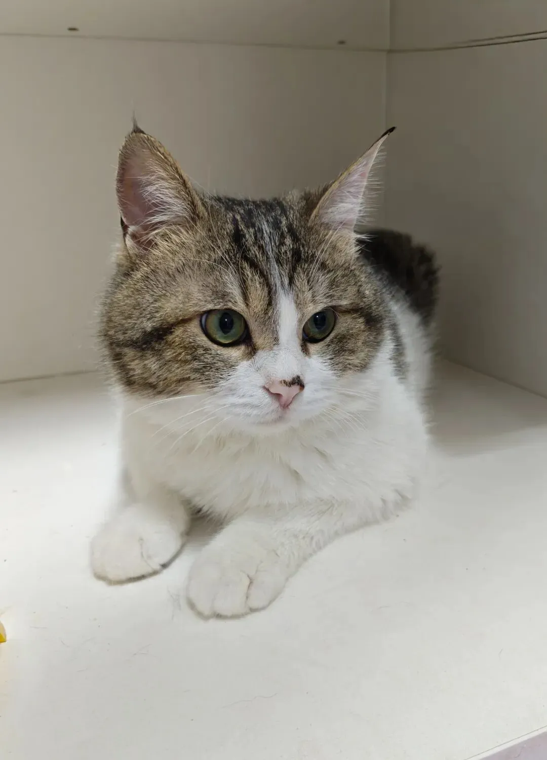 被弃养过,但生活习惯非常好:它曾经有家,有人教过它规矩。用猫砂、不抓沙发、不捣乱——它是一只省心的小猫。