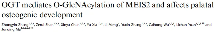 源于Zhongyin Zhang的论文《OGT mediates O-GlcNAcylation of MEIS2 and affects palatal osteogenic development》(2025年),因客观原因未能与权利人取得联系。本平台出于学术交流目的引用,无意侵犯原作者权益。如权利人认为不妥,请及时联系公众号后台,我们将立即删除或协商解决。医学国自然,省自然,博士课题设计,医学实验外包,医学SCI,实验方案设计,免费的线上博导一对一沟通,确认实力后再谈合作,科研合作可以加微信:SCI971SCI国家杰青一对一答疑视频