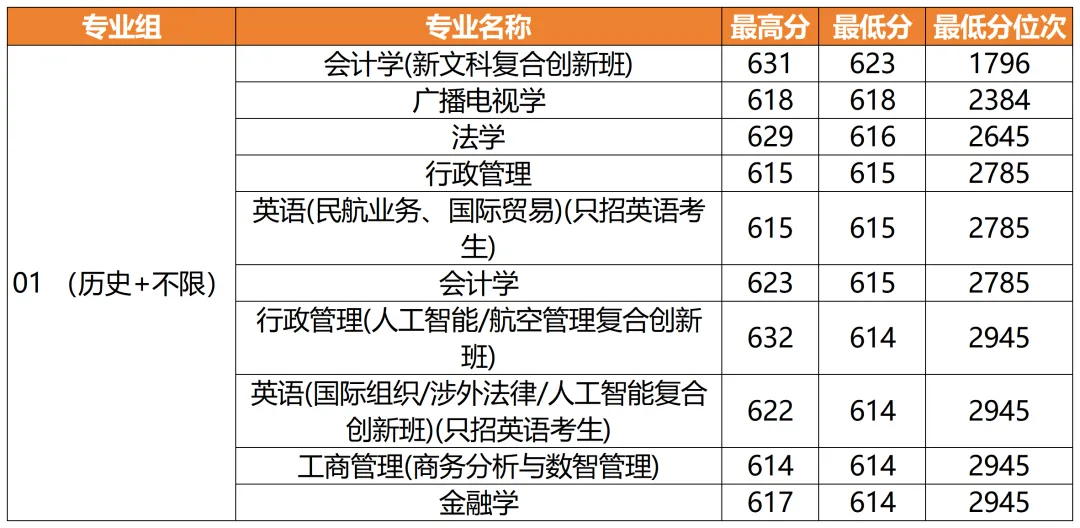 南京航空航天大学2025年专业录取分数(历史类)