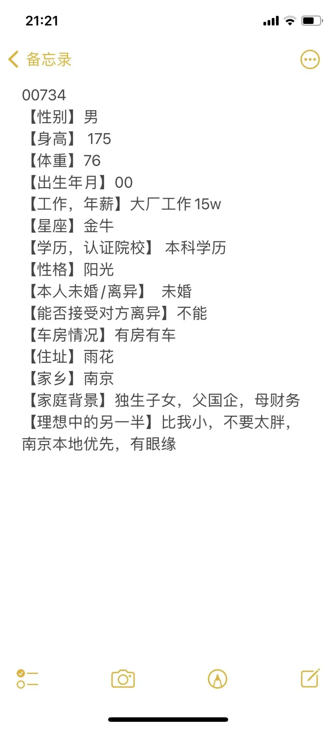 >南京脱单|00年,男,身高175,本科学历,大厂工作,南京本地人,目前在雨花区