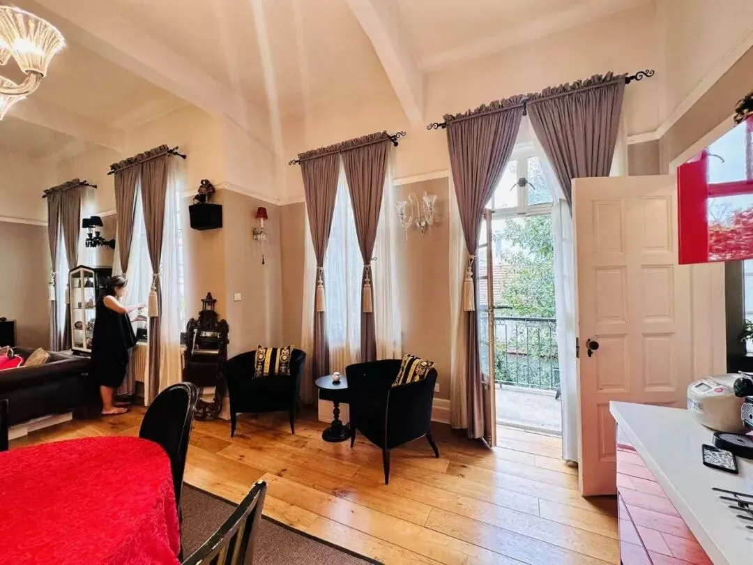 花园公寓建于1930年,属英资惠罗公司物业,多为英侨居住。1941年太平洋战争爆发,日军进入上海租界,花园公寓被作为“敌产”没收。抗战胜利后,公寓物归原主,但这些侨民多死在集中营,幸存者也急于回国,惠罗公司决定把房产卖掉变现,供侨民回国安家津贴。于是,程乃珊的祖父和另两位银行家(史久鳌、香港董建华妹夫的外公和潘久芬)联合,各出30万美金,把整条公寓弄堂包括沿街铺面买了下来作为投资。