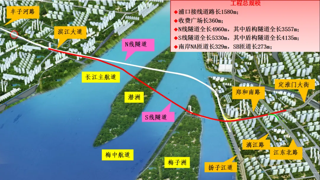 作为连接长江南北交通的大动脉,扬子江隧道采用双管双层八车道设计,最长段达7.3公里,最深处距江底70米,日均车流量约9.5万辆,是同类隧道中施工规模最大、水压最高的,也是我市最结构复杂的隧道。