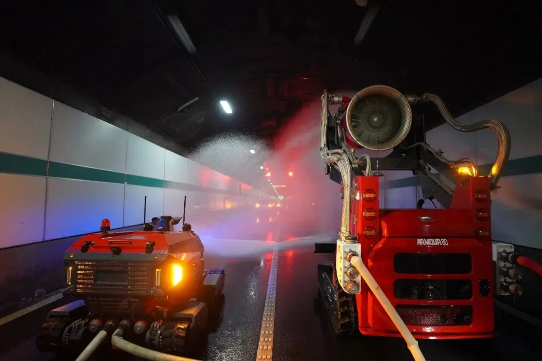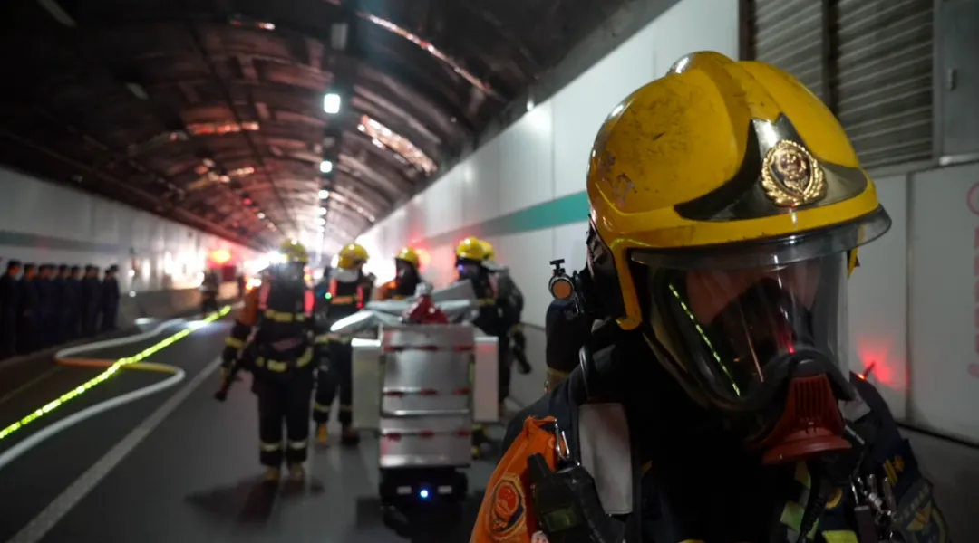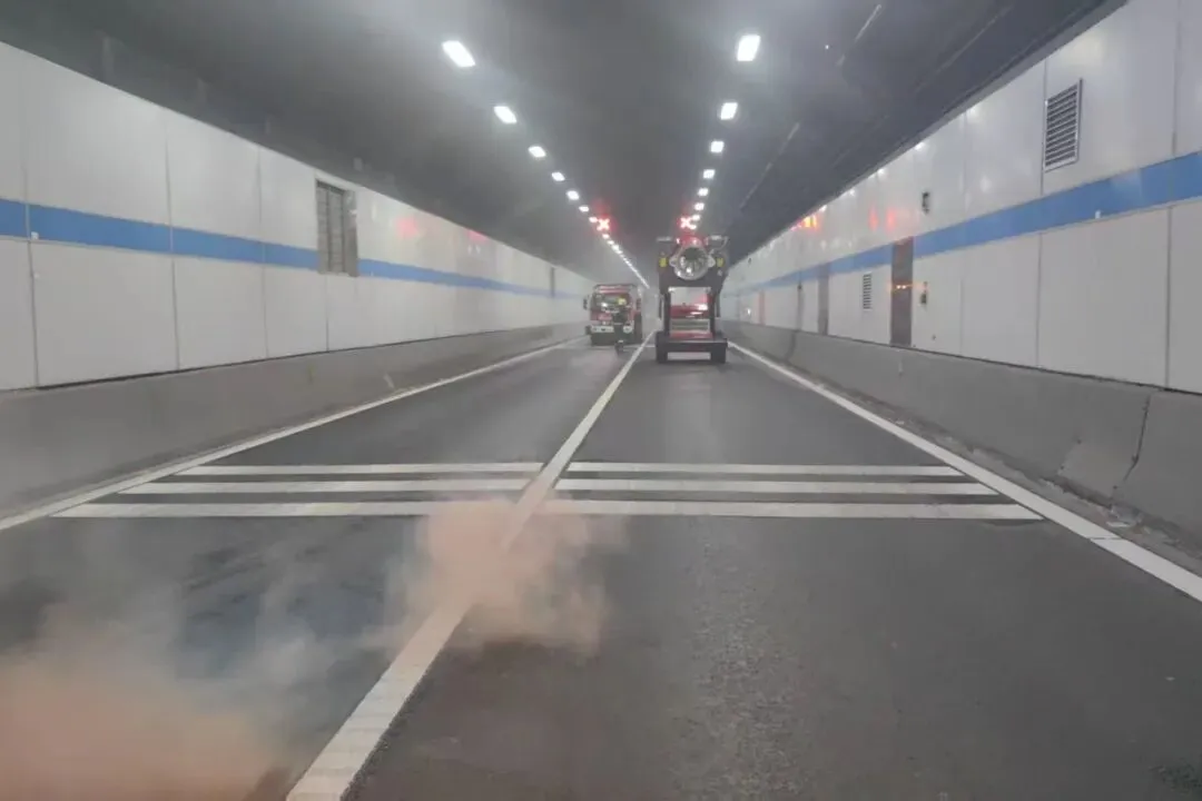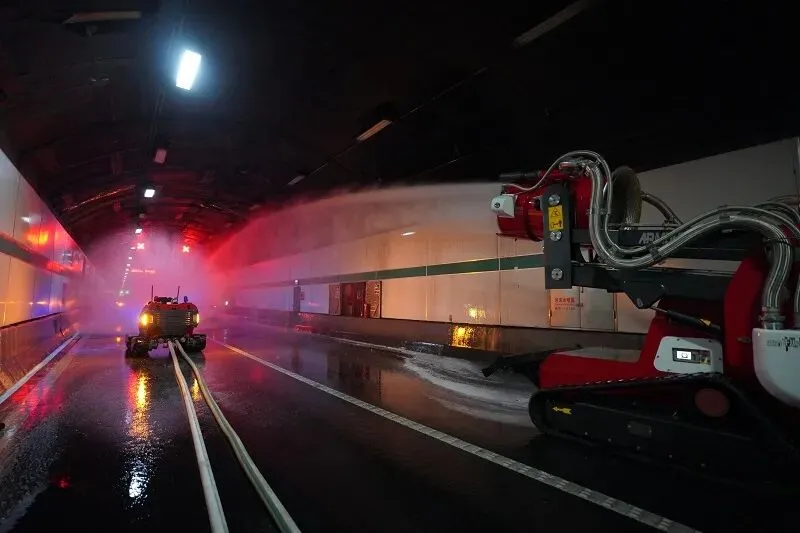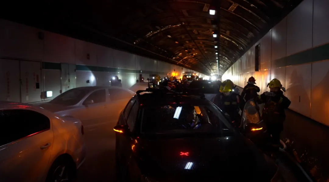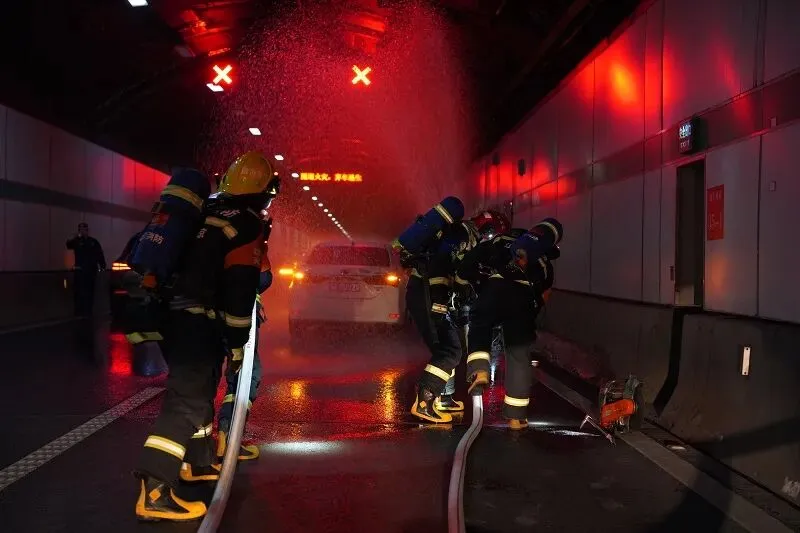 隧道管理中心接警后立即响应,启动预案,查看监控确认灾情,调派工程车辆前往,同步开启广播、排烟、泡沫灭火系统,先期处置一气呵成。