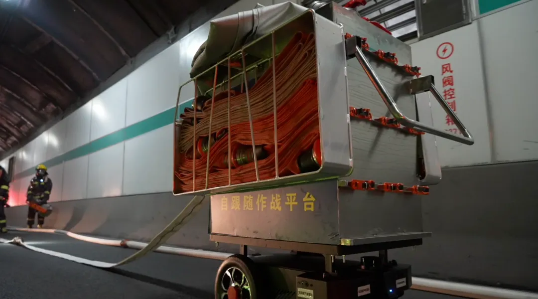 跟随机器人自动识别消防员轨迹,背负器材随行助攻;汽车灭火毯、新能源底盘水枪精准降温,大流量灭火机器人、排烟机器人协同配合,强力压制火势,同步驱散浓烟。