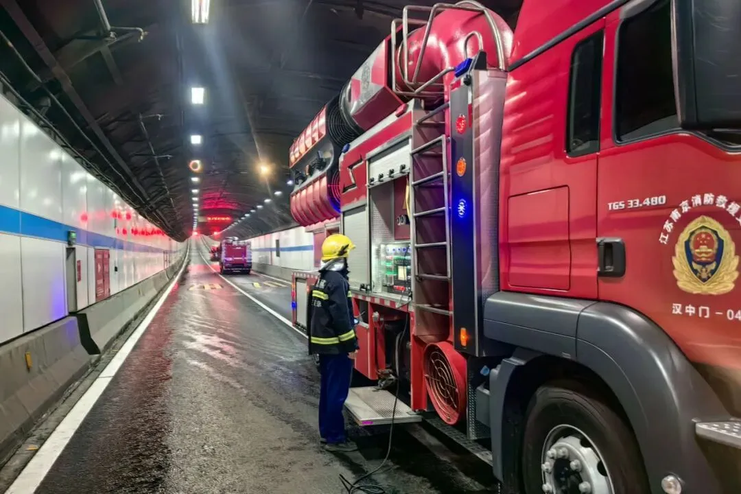 凌晨!南京消防在扬子江隧道开展无预案灭火救援演练...