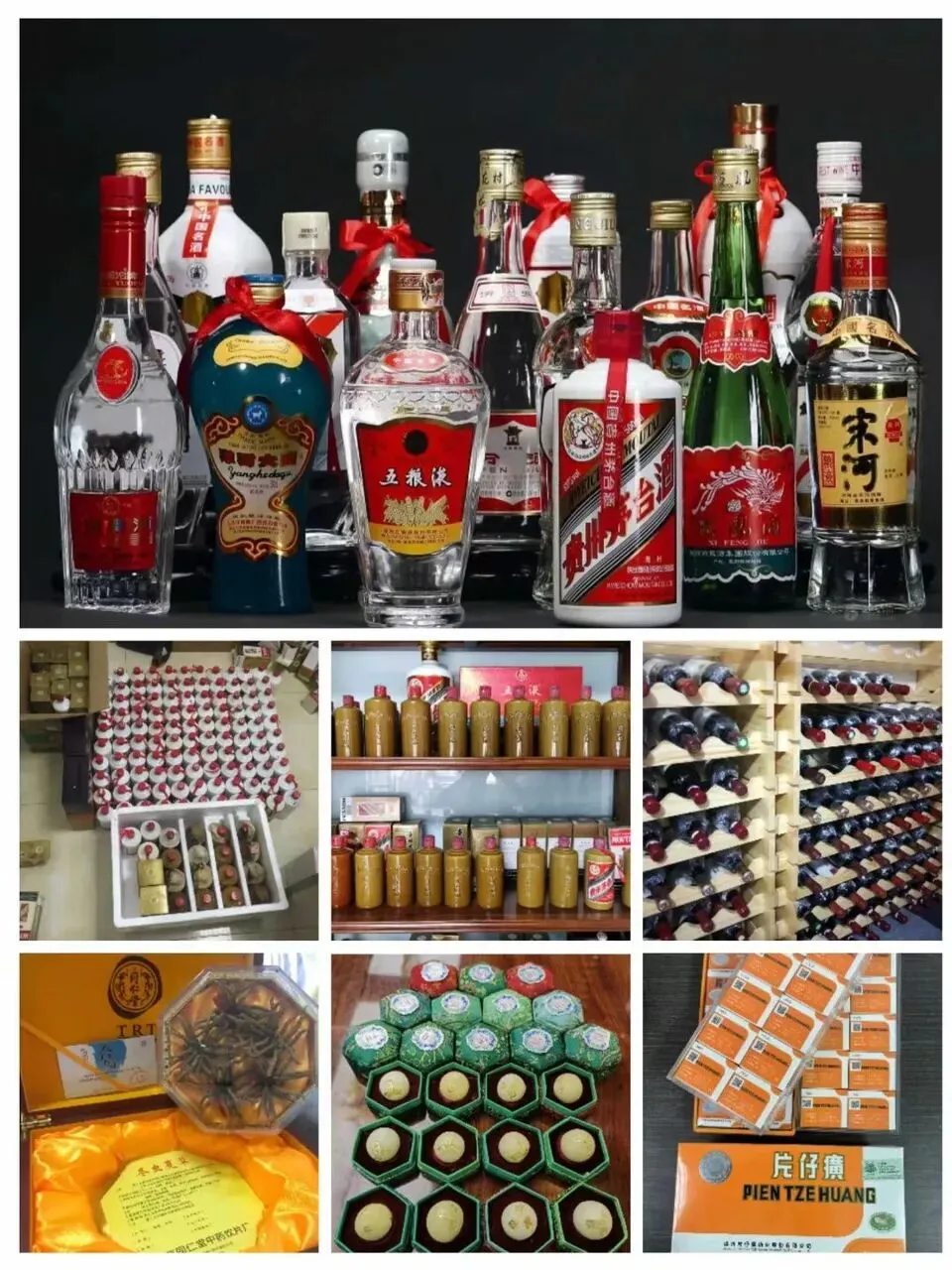 名酒系列:茅台酒.五粮液.国窖1573.水井坊.剑南春.郎酒,董酒,汾酒,洋河,泸州老窖,竹叶青,西风酒等名酒老酒.礼盒系列;茅台礼盒15年 30年 50年 80年茅台礼盒,