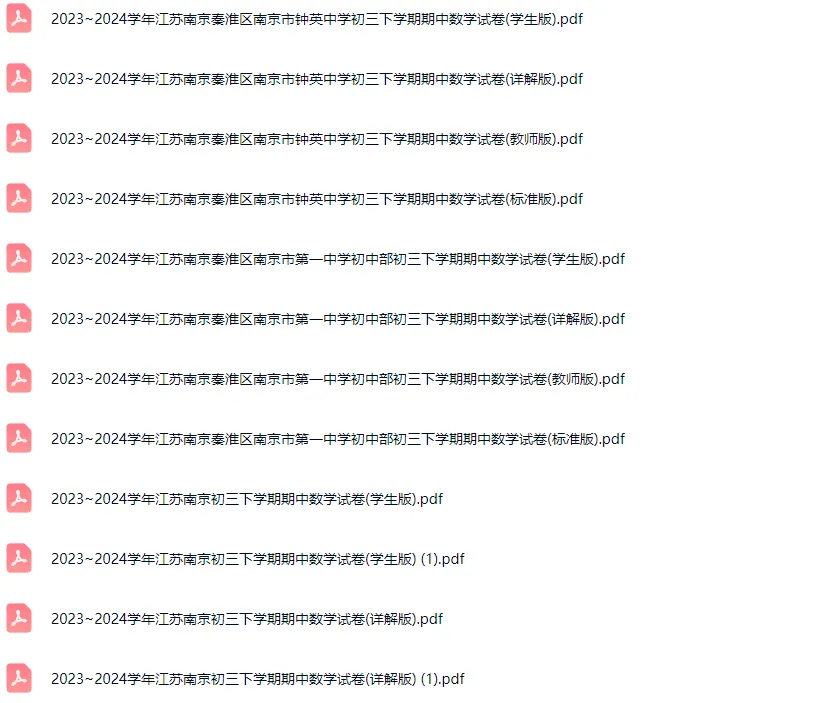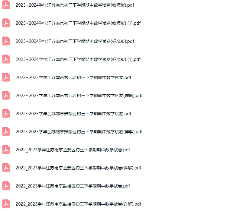 >33套2016-2024学年南京各区初三下学期期中数学真题及答案解析