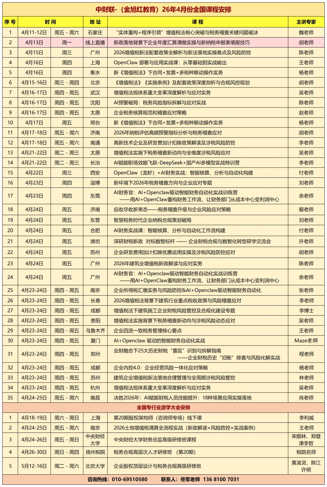 【北京.4月15-16日】《增值税法》《实施条例》及配套政策深度剖析与合规风控规划