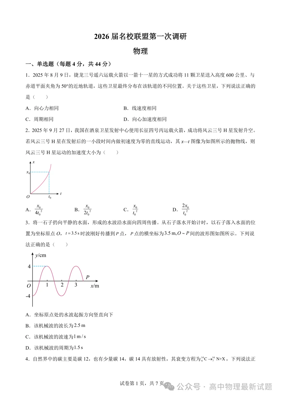>2026届江苏南京鼓楼区名校联盟高三下学期一模物理试题