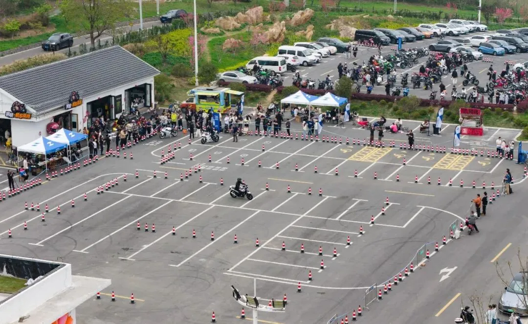 这是张雪机车于世界超级摩托车锦标赛(WSBK)夺冠后,在南京举办的首场820RR试驾会,试驾会消息一出,报名情况火爆,吸引300多位爱好者从安徽、湖北等地专程赶来,只为近距离体验中国机车的硬核实力,同时也想感受老山响堂的春日之美。