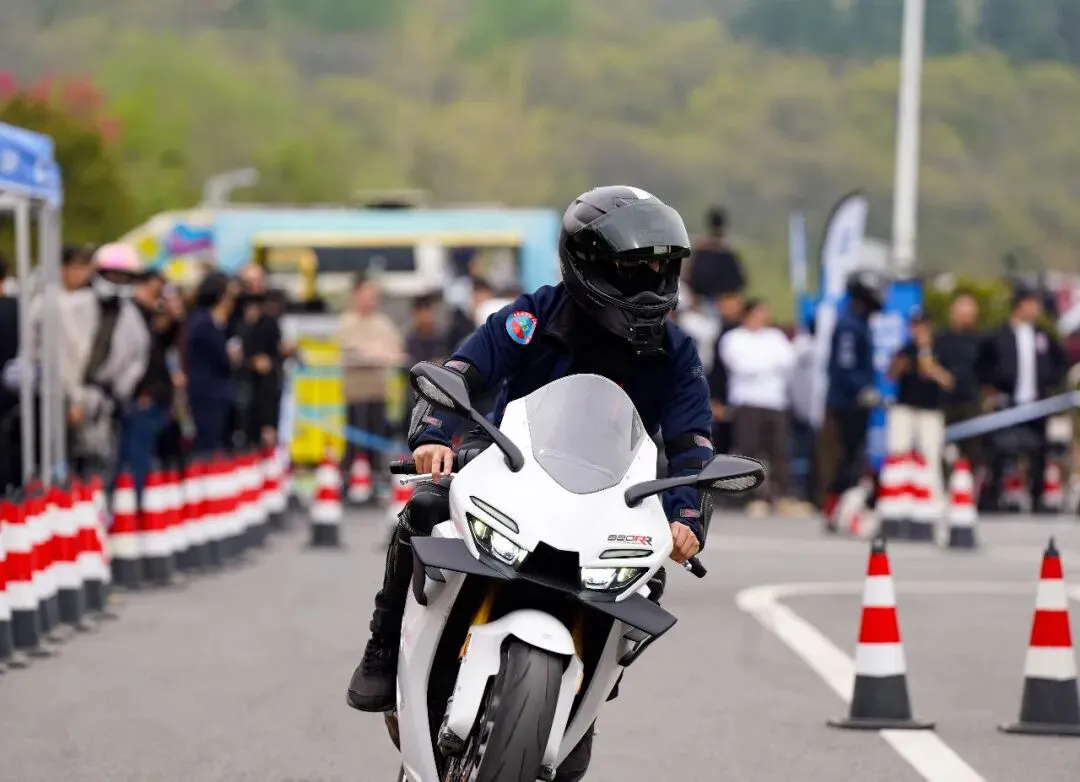 3000平方米的封闭试驾场内,首批通过测试的摩友轮番体验,南京摩友李俊阳成为全场首位试驾820RR的幸运儿。有着5年骑龄、3万多公里骑行里程的他,试驾后难掩激动,“发动机运转特别顺畅,平顺性和静谧性完全不输欧系、日系车,太惊艳了!”作为亲历国产机车发展的摩友,李俊阳直言,如今国产机车的工艺早已颠覆早年认知,更期待国产机车能登上世界摩托车锦标赛(MotoGP)、曼岛TT摩托车大赛等顶级赛场,让世界看到中国制造的实力。
