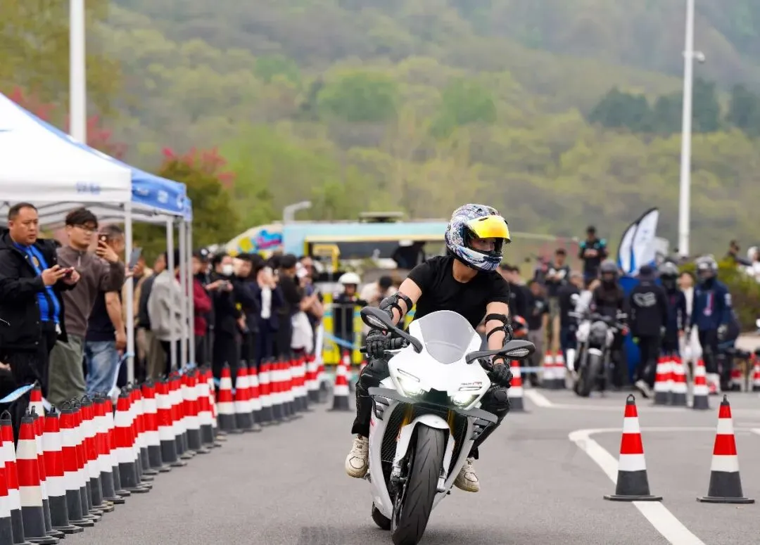 “想试820RR,得先过两关!”试驾会安全教练闫开通介绍,冠军车型820RR动力充沛,试驾会设置双重硬性门槛。一是驾龄必须满一年,二是需先试驾500RR小排量车型完成八字绕环测试,经教练评估操作合格后,才能解锁试驾资格。试驾前,所有参与者还需参加专业安驾培训,教练现场拆解刹车运用、离合操作、骑行姿势等核心技巧,闫教练在安驾培训中反复叮嘱,“一定要控制好右手,这款车的动力比想象中更猛”。