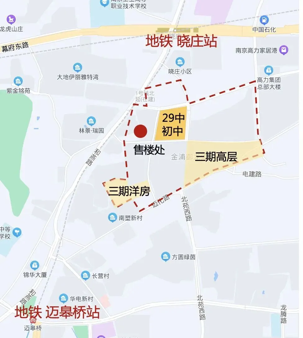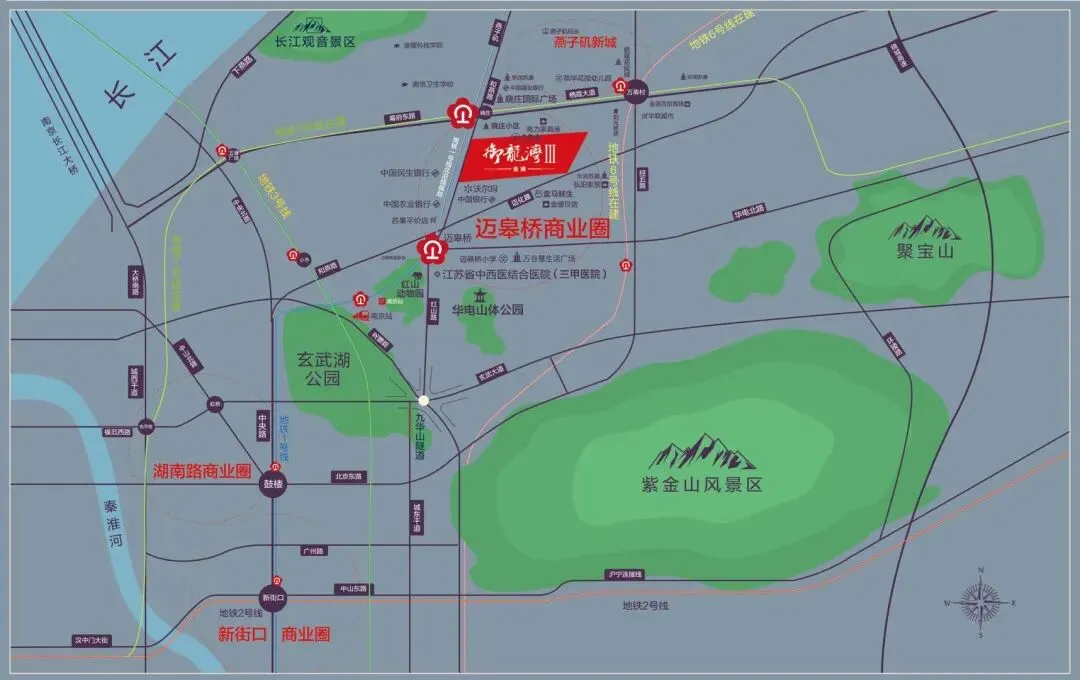🏥【医疗配套】:项目周边医疗设施齐备,2公里可达江苏省中西医结合医院、南医大二附院迈皋桥院区;3公里可达燕子矶新城医院(规划中)、南京市妇幼保健院分院(预计4月投入使用);