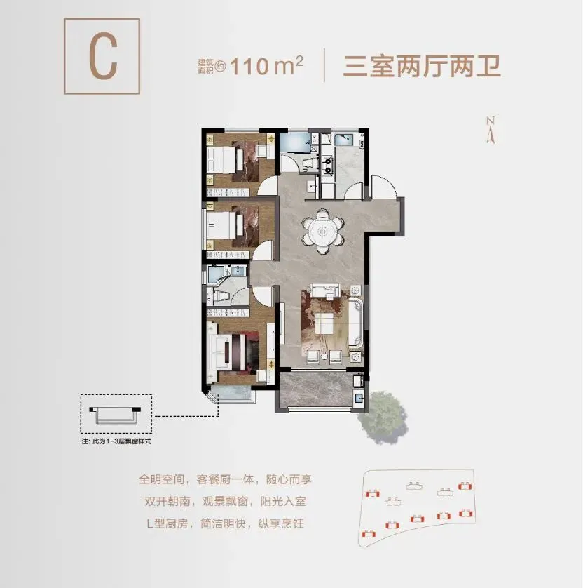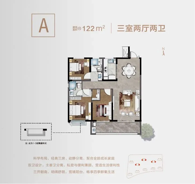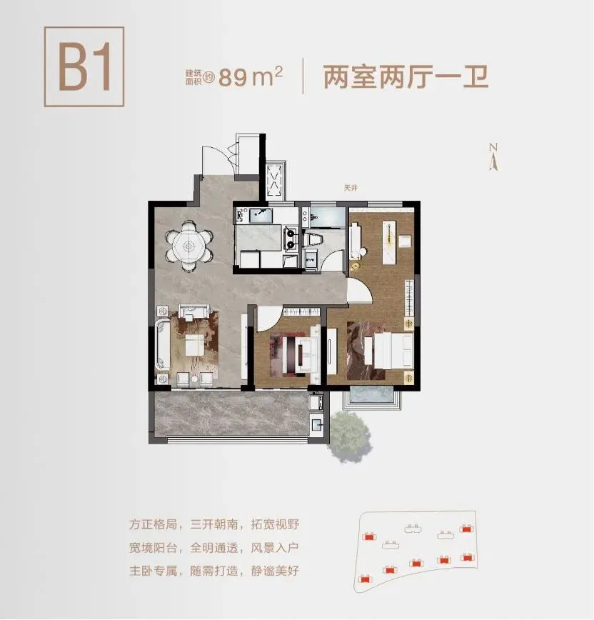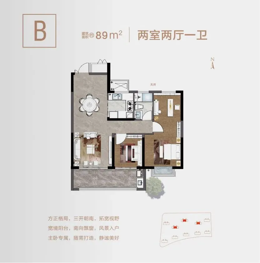 🏠【户型赏析】:面积段89-122平,全明户型,动静分离,双联阳台,多开间朝南!