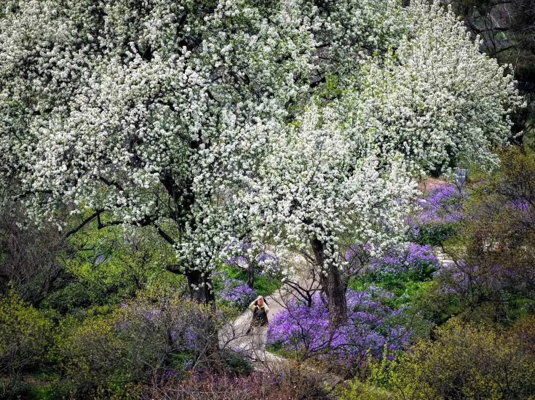 宁波的蔡女士和闺蜜,也选择在清明小长假的第一天来到南京钟山风景区,开启“追花一日游”。明孝陵景区的各色春花组成一场盛大的花事,让她流连忘返。“淡紫色的二月兰,成片成片铺展开来,连绵起伏,看着特别治愈;自带温婉气质的垂丝海棠,就像娇羞的小姑娘,惹人怜爱;还有一团团像瀑布一样自然垂落下来的雪柳,太壮观了,手机里塞满了南京的春花和春光!”通过微信语音,她同记者分享美妙的南京赏花之旅。