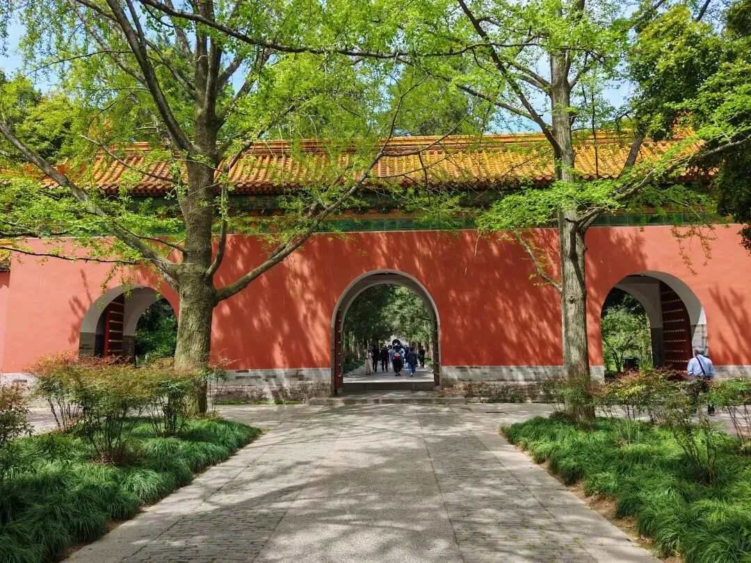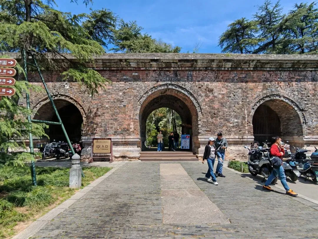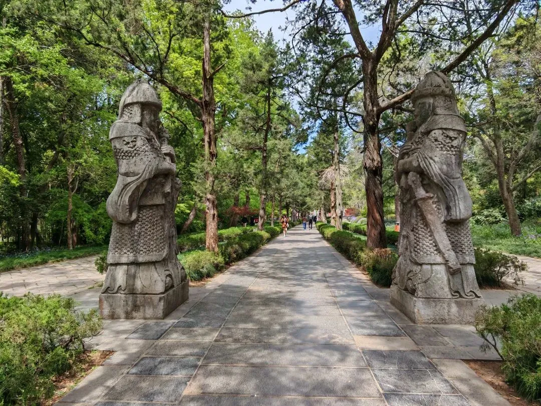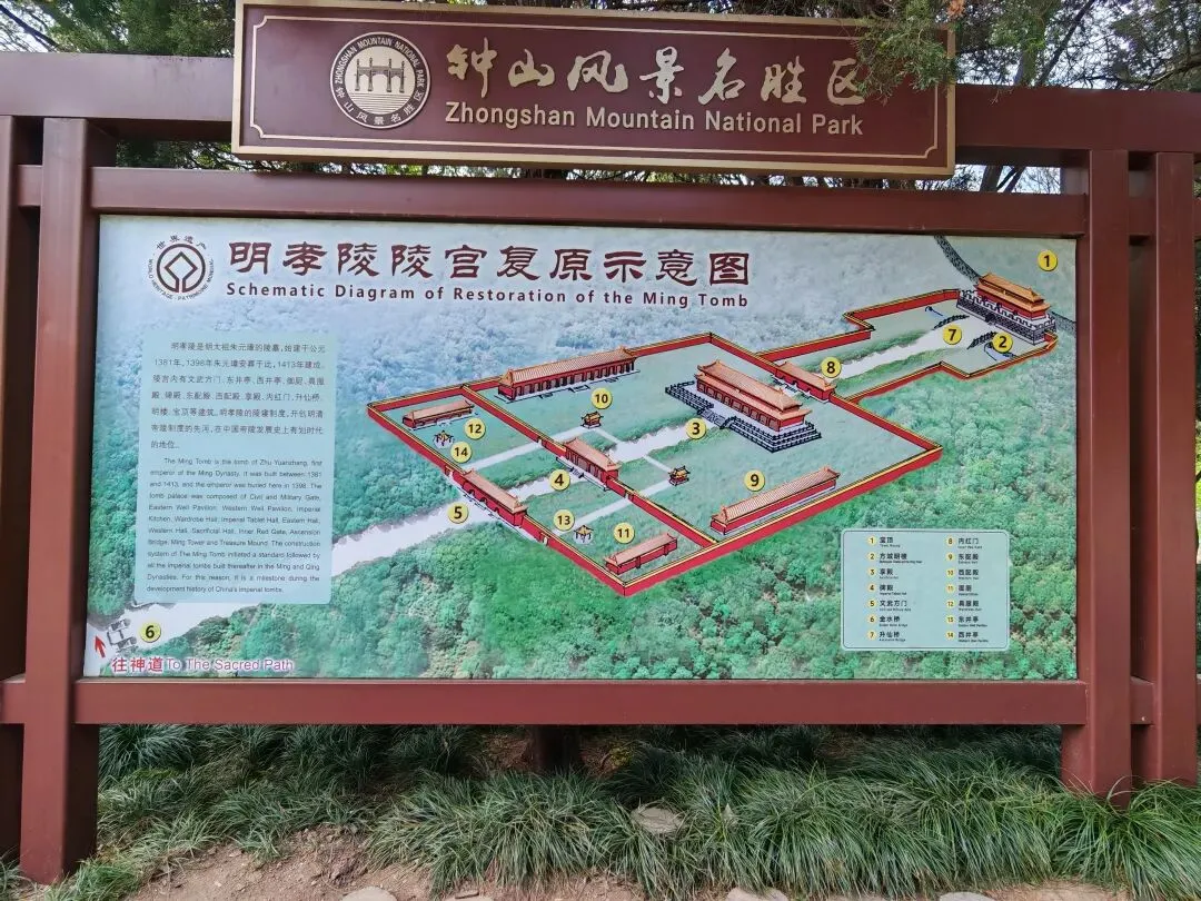 和中山陵在一个大区块,同属于钟山风景区,所以我们第二个目标就是明孝陵。这里是朱元璋和马皇后的安葬陵寝。从前往后依次是外城的大金门、金水桥、两组神道、文武方门、碑殿、享殿、内红门、升仙桥、方城明楼,最后是宝顶。