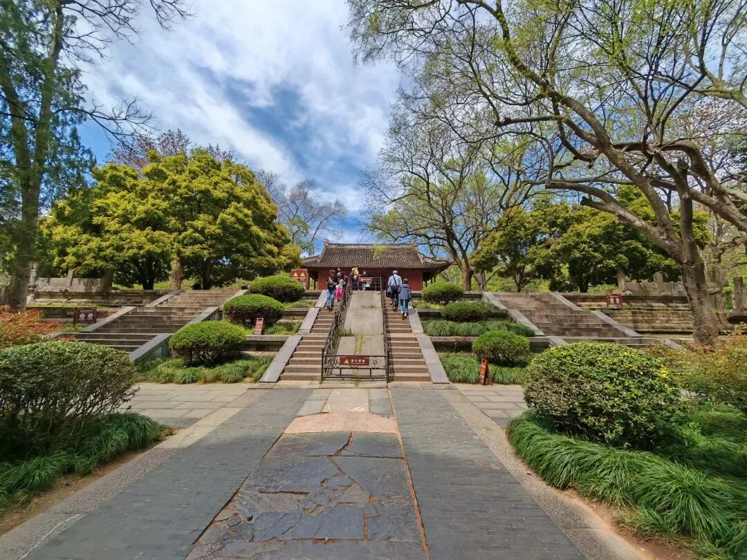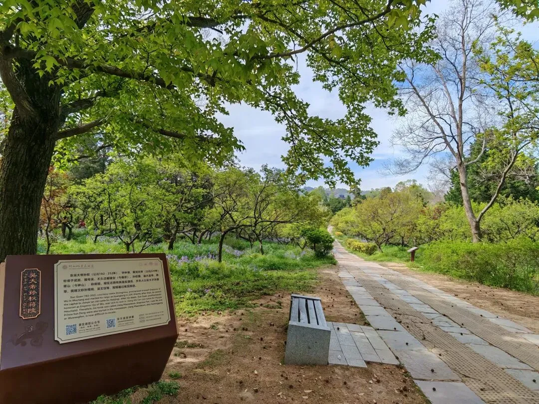 出了明孝陵,大概300米的距离就是东吴大帝孙权纪念馆,这里也叫梅花山、梅花谷、孙陵岗等。据一些古籍记载,孙权死后葬在这里,但是关于陵寝规制规模、占地面积、地上殿宇地下陵寝等等记载都没有。纪念馆主要介绍孙权其人以及东吴政权的兴衰,陵墓只有一个现代标志碑——吴大帝孙权蒋陵。
