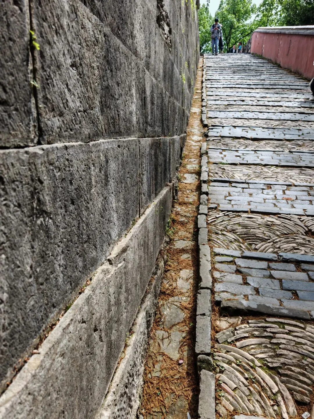 它一大特点是,神道不直行,前一段是石象生神道,相对直一些;后一段翁仲神道直接是折弯过去,而且道路本身也是曲折的——这与一般帝王的陵寝神道中轴对称直行大不一样。