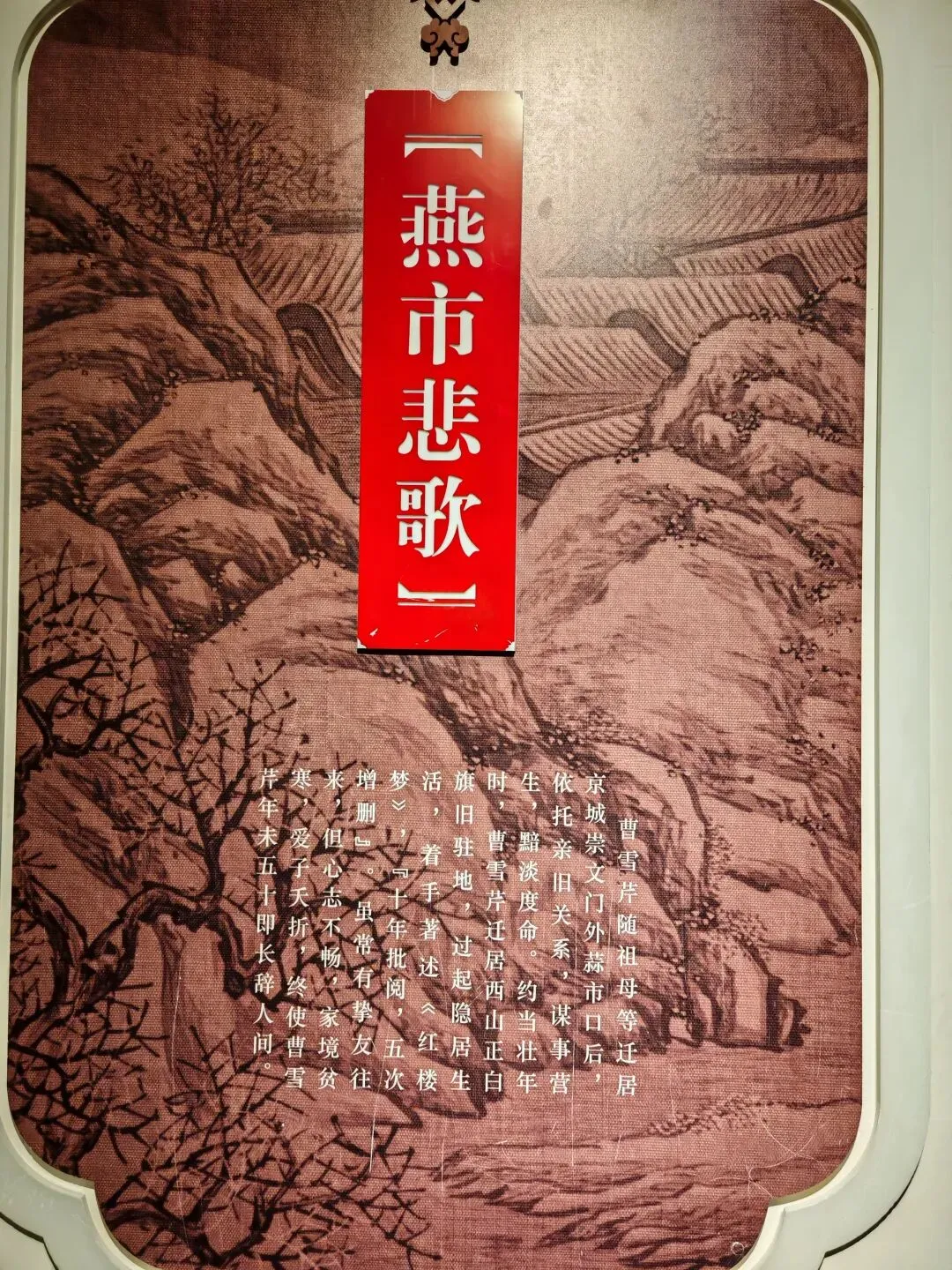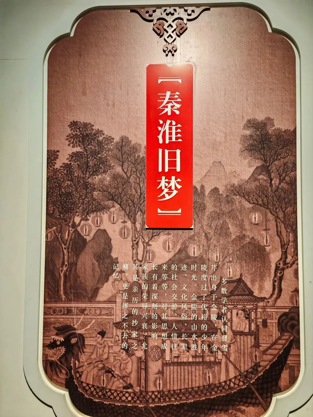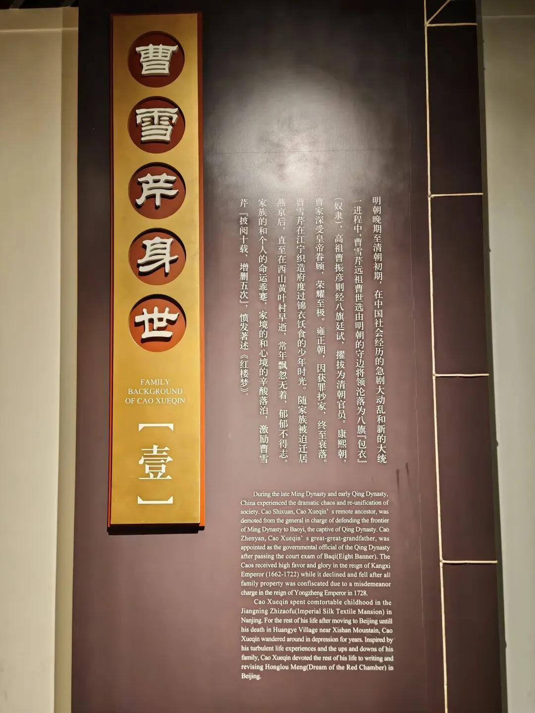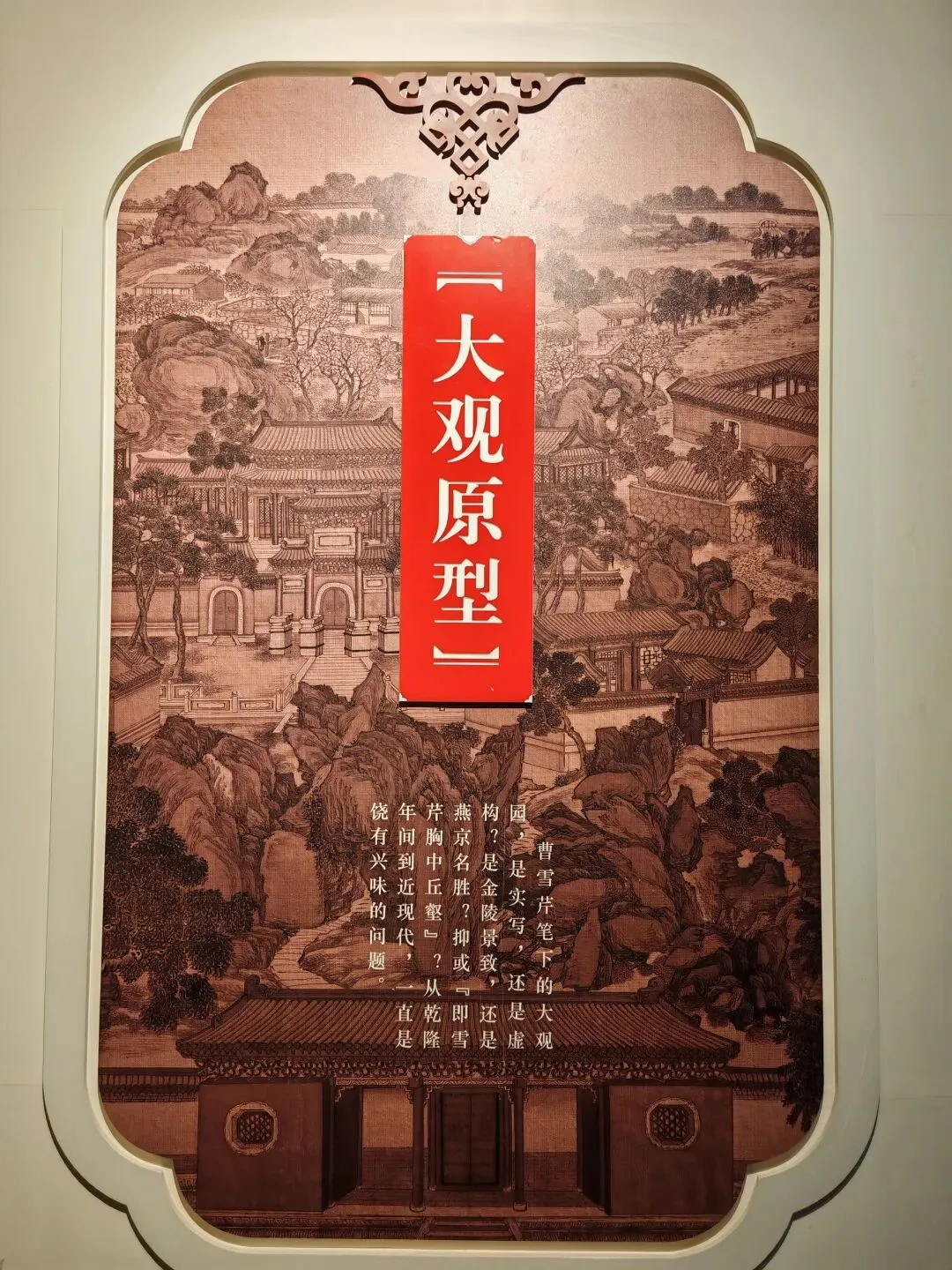 第二,这里就是曹雪芹出生的地方,因而设有专门的“红楼梦曲”陈列,主要介绍曹雪芹的身世及曹家的兴衰,《红楼梦》创作过程,基本故事情景,后世影响。这两大部分展厅是我最感兴趣也是参观最仔细的。关于“大观园”的原型,现代学者认为,是采纳了诸多当时园林,比如:北京恭王府、北京圆明园、苏州拙政园、北京什刹海…