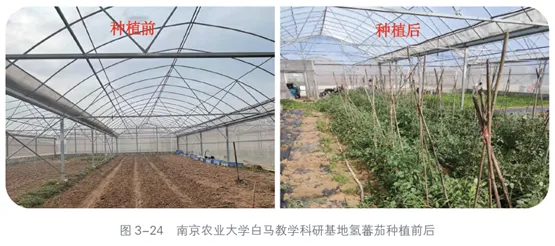 南京农业大学白马教学科研基地位于江苏省南京市白马国家农业科技园科技创新核心区,规划用地面积5050亩。白马基地不仅有高标准的露天农田,还具有水电条件良好的设施园艺网室和大棚,能够支撑规模化的温室氢园艺试验 (图3-24)。