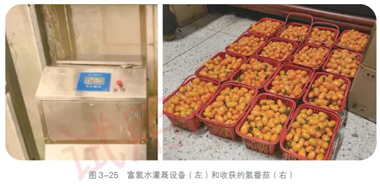 樱桃番茄营养丰富,口感酸甜,深受消费者欢迎。从2022年开始,南京农业大学氢气生物学研究团队在南京农业大学白马教学科研基地的园艺网室开展大田氢番茄的研究。结合在上海青浦的试验,团队选用了樱桃番茄品种“金童”进行了多年的氢番茄种植试验,收获的番茄色香味俱佳,获得师生的广泛好评 (图3-25)。