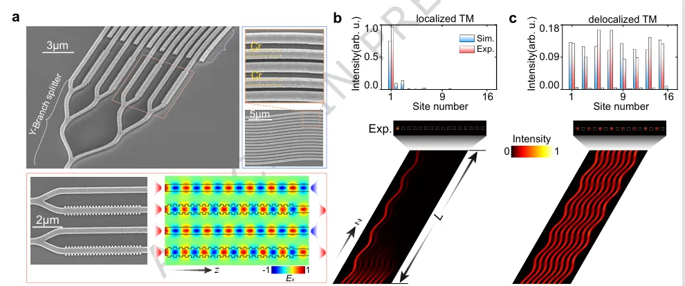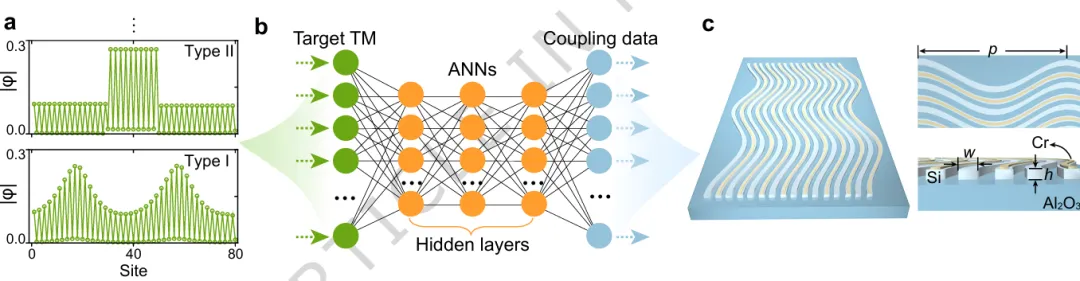 近日,南京大学祝世宁院士、李涛团队联合香港大学张爽团队在Nature Communications上发文,在硅基光子芯片上,通过三类人工规范场,包括标量规范场(波导宽度调制实现能移)、矢量规范场(波导弯曲实现相位调制)和虚数规范场(铬层损耗实现非厄米增益 / 损耗),三类规范场共同作用,触发非厄米趋肤效应(NHSE),并结合人工神经网络的AI逆向设计,将传统局域在边界的拓扑边缘态连续转变为任意形状的全域扩展拓扑态,实现了拓扑模式雕刻成所需的形状。