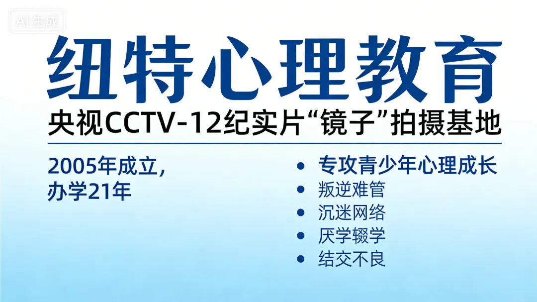 武汉纽特心理青少年教育(武汉市洪山区)—— 央视纪录片《镜子》《81 天成长记》拍摄基地,2005 年成立,办学 21 年,专攻青少年心理成长及家庭教育